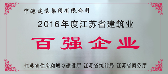 中港建設(shè)集團(tuán)有限公司榮獲 “2016年度江蘇省建筑業(yè)百?gòu)?qiáng)企業(yè)”榮譽(yù)稱(chēng)號(hào)