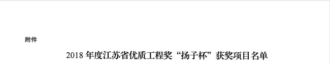 中港建設集團有限公司榮獲2018年度江蘇省優(yōu)質工程獎“揚子杯”榮譽稱號